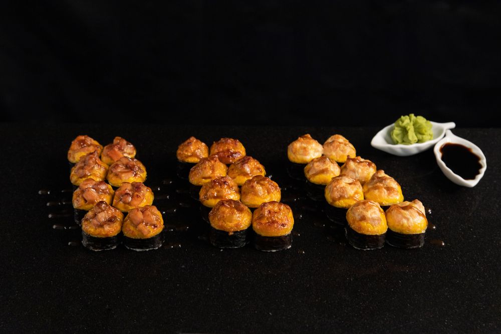 Горячий сет из запеченных роллов как с лососем в классическом исполнении, так и ролл с копченым лососем с нежным яки соусом и ролл с тунцом в сочетании с пикантностью спайси соуса для истинных ценителей рыбных комбинаций.