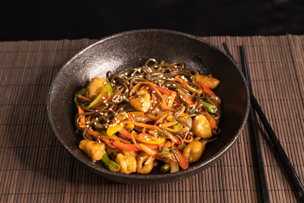 Традиционная для Японии и позаимствованная из Китая обжаренная лапша с овощами и курицей в соусе терияки. Данное популярное блюдо знакомо ценителям стир-фрай лапши по всему миру.