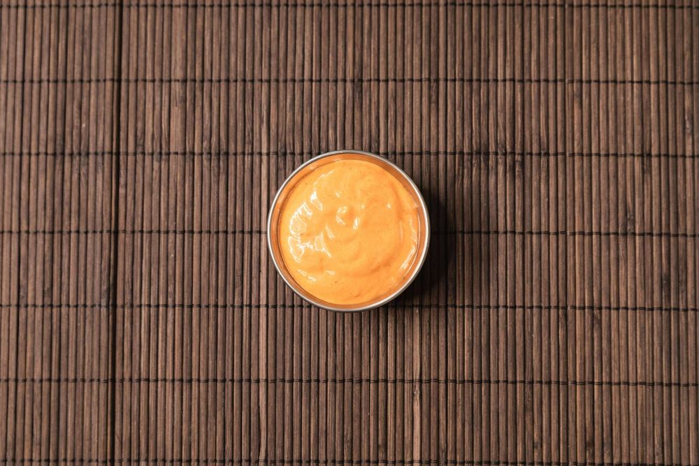 Майонез, чеснок, паста табаджан, паста перцовая кочудян, паста кимчи.